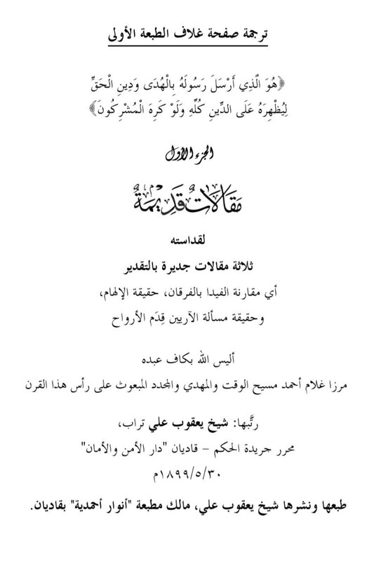 Chashma-e-Marifat and Paigham-e-Sulh ينبوع المعرفة ورسالة الصلح