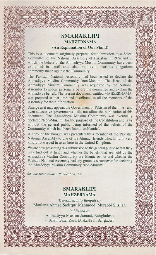 Mahzarnama āĻŽāĻžāĻšā§âāϝāĻžāϰ āύāĻžāĻŽāĻž (āϏā§āĻŽāĻžāϰāĻāϞāĻŋāĻĒāĻŋ)