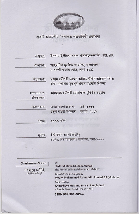 Ahmadiyya Muslim Jamaat Bangladesh Centenary Souvenir