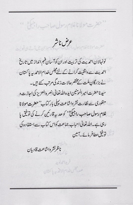 حضرت غلام رسول صاحب راجیکی | Hazrat Ghulam Rasool Rajeki Sahib.Urdu Regular price $3.00Regular priceUnit price per-