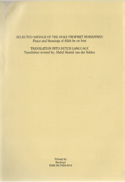 Selected Sayings of the Holy Prophet(pbuh) Vai Translation