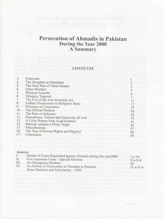 Persecution of Ahmadies in Pakistan during 2000