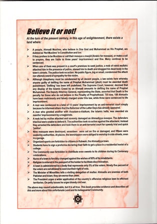 Plight of Ahmadi Muslims in Pakistan 1989 to 1999