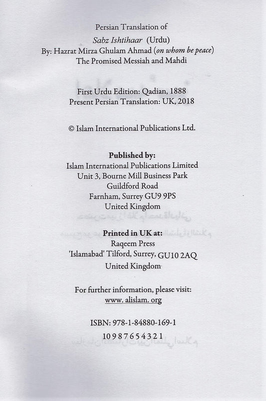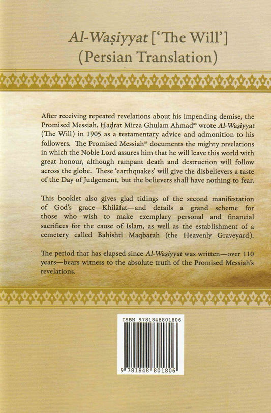 Al Wassiyat وصیت ترجمہ فارسی اردو کتاب الوصیت