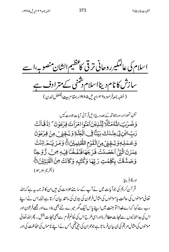 14:Islam ki alamgir roohani taraki kay azeem us shan mansooba ko sazish ka naam dayna islam dushmani kay mutradif hay
