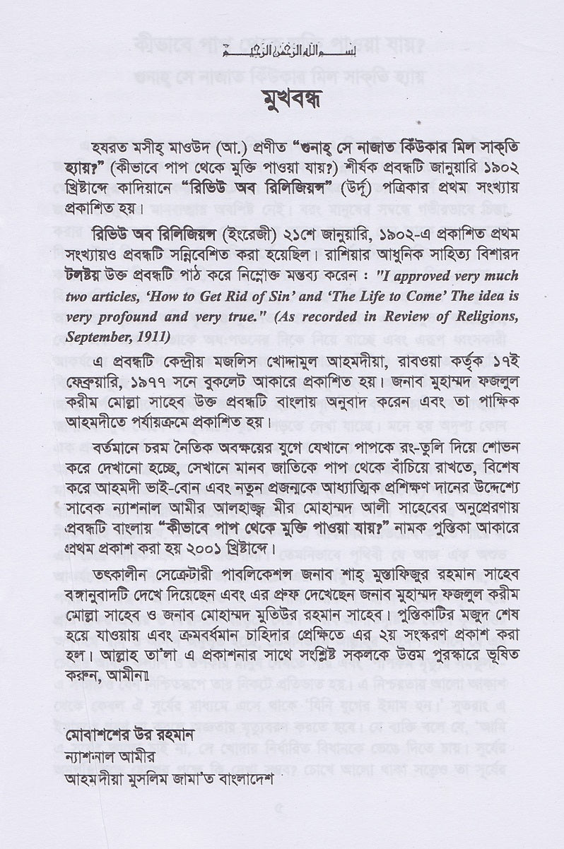 প্রণীত “গুনাহ্ সে নাজাত কিউকার মিল সাকতি হ্যায়?” (কীভাবে পাপ থেকে মুক্তি পাওয়া যায়?) শীর্ষক প্রবন্ধটি জানুয়ারি ১৯০২ খ্রিষ্টাব্দে কাদিয়ানে “রিভিউ অব রিলিজি... Read More
