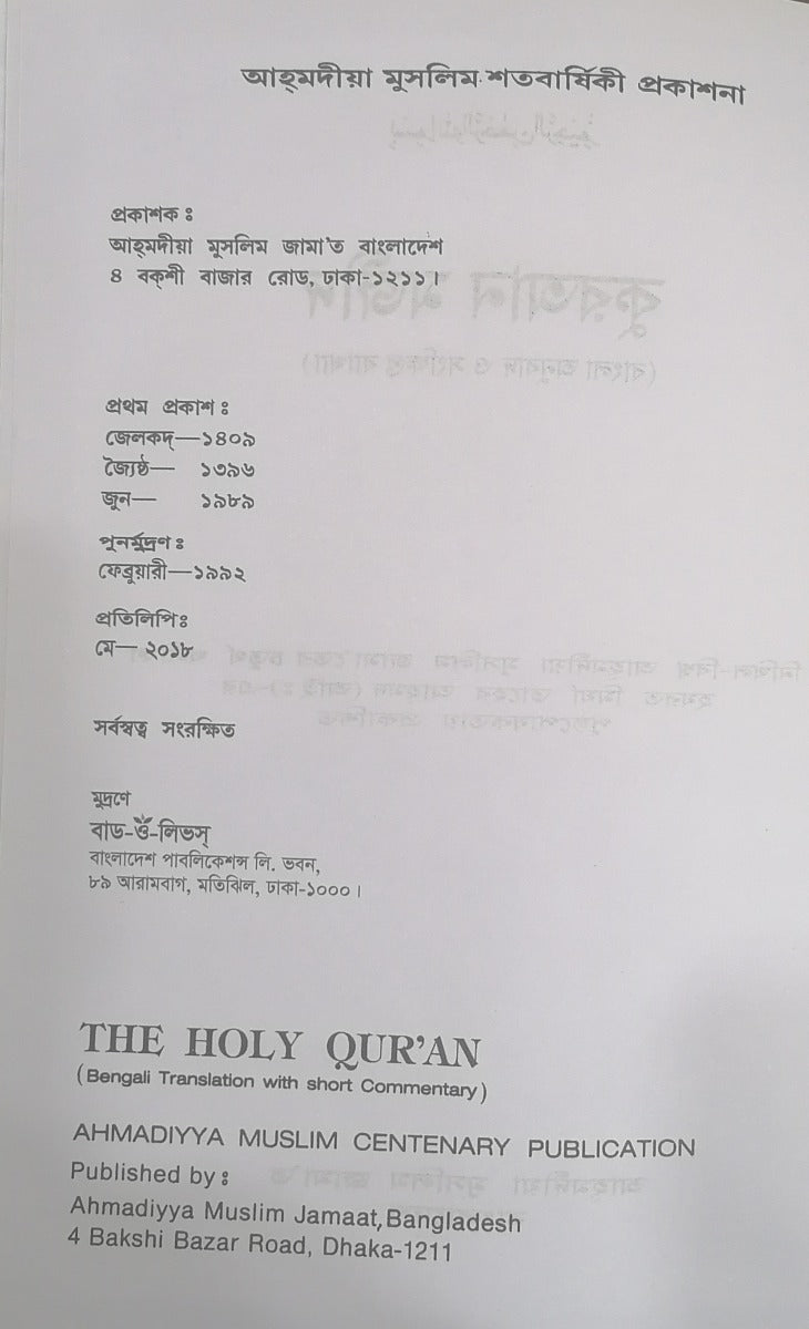 Holy Quran with Bengali Translation (Printed in Bangladesh)