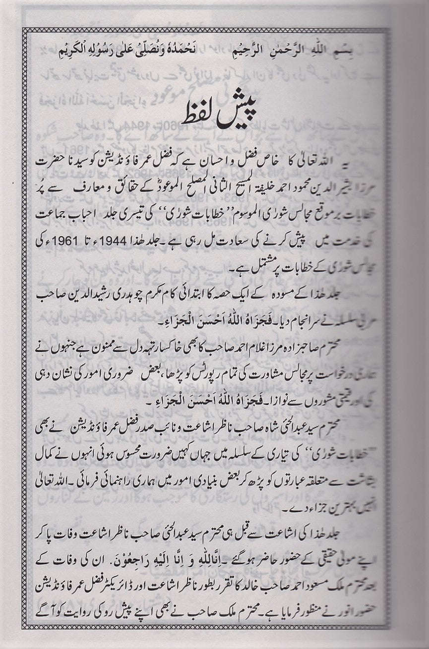 Addresses to shura from 1944 1961 by Hazrat Fazal-e-Umar (ra)