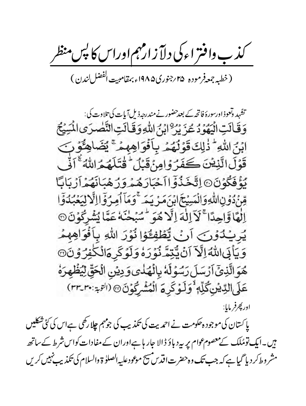 Friday sermon 25 January 1985