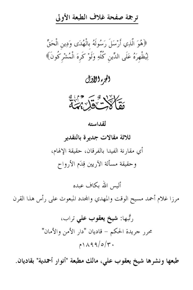 يسعدنا أن نقدم لقراء العربية ترجمة مجموعة من مقالات كتبها سيدنا المسيح الموعود عليه السلام، قبل بعثته، وقد جُمِعت في كتاب با... Read More