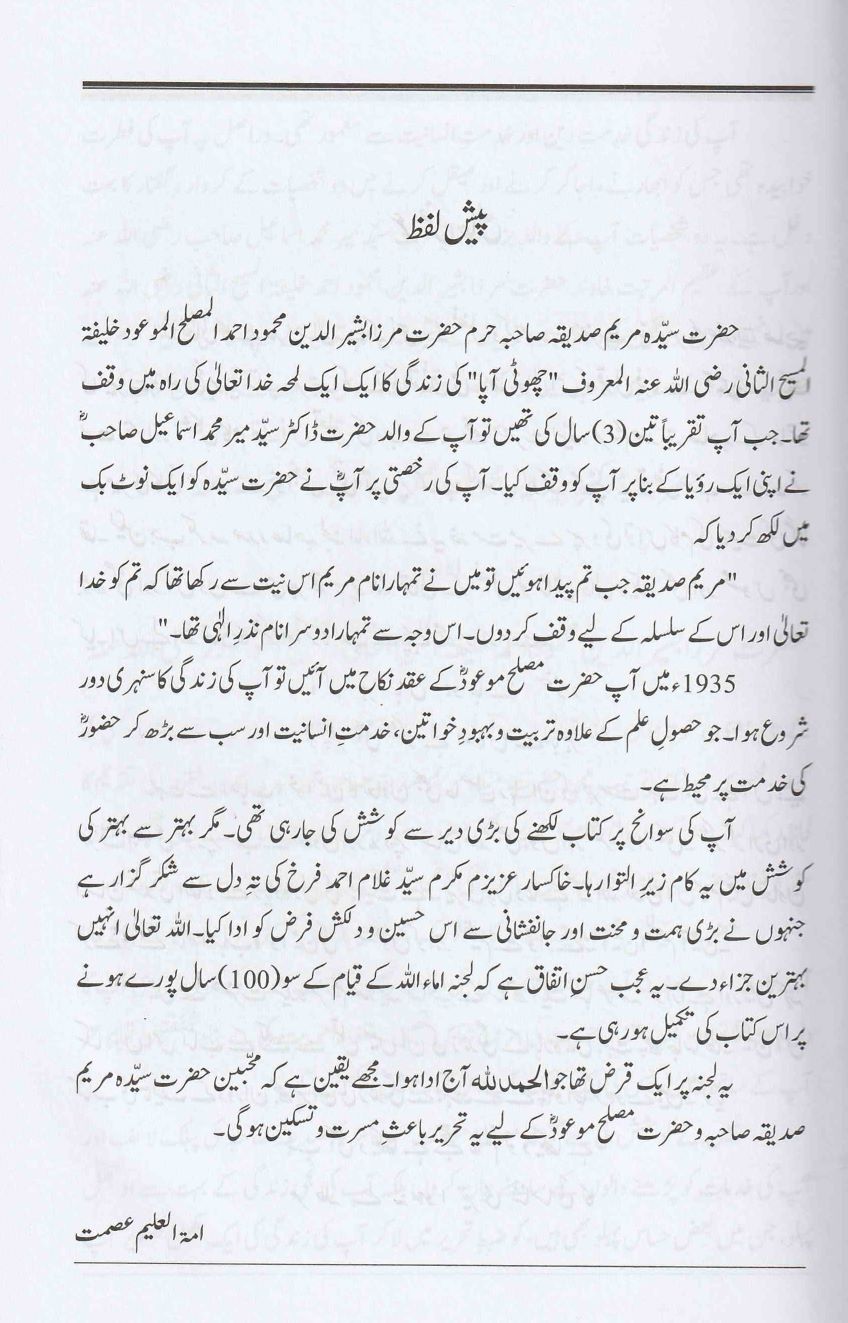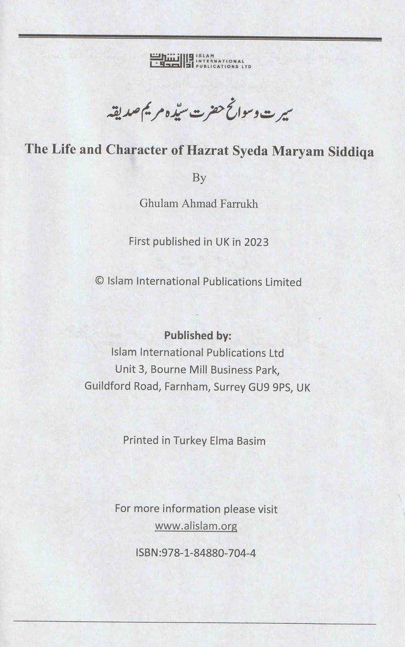 Seerat-o-sawane of Hazrat Syeda Maryam Siddiqa