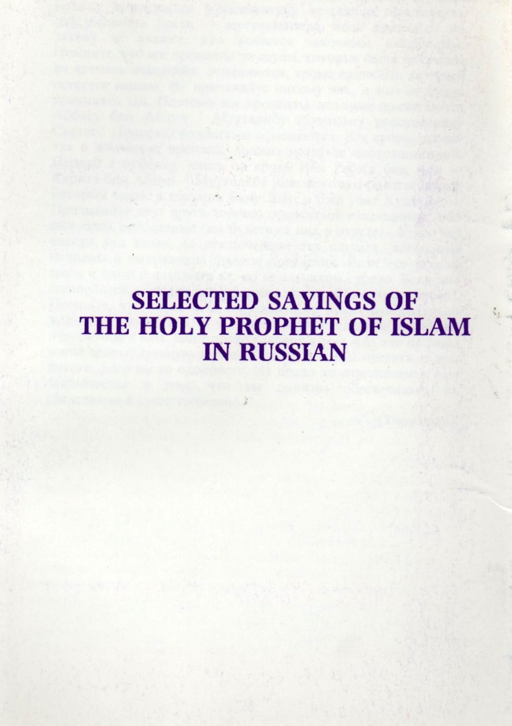 Selected Sayings of the Holy Prophet of Islam