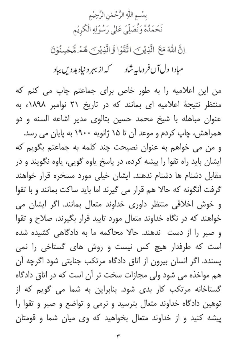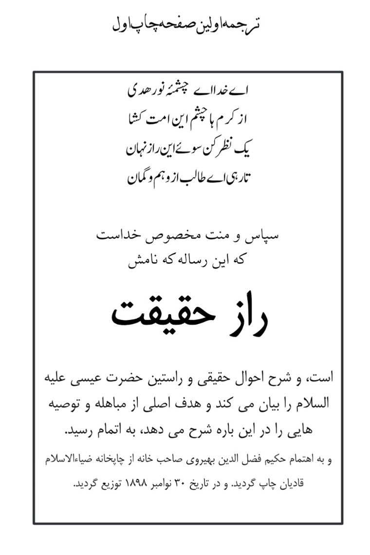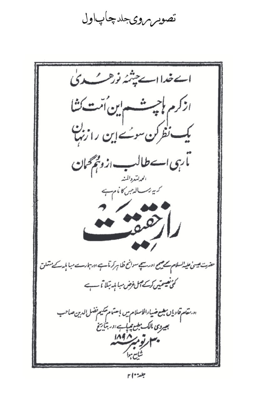 این رساله در ۳۰ نوامبر ۱۸۹۸چاپ گردید. در این رساله حضرت امام مهدی و مسیح وموعود علیه السلام شرح احوال حقیقی حضرت عیسی علیه السلام در... Read More